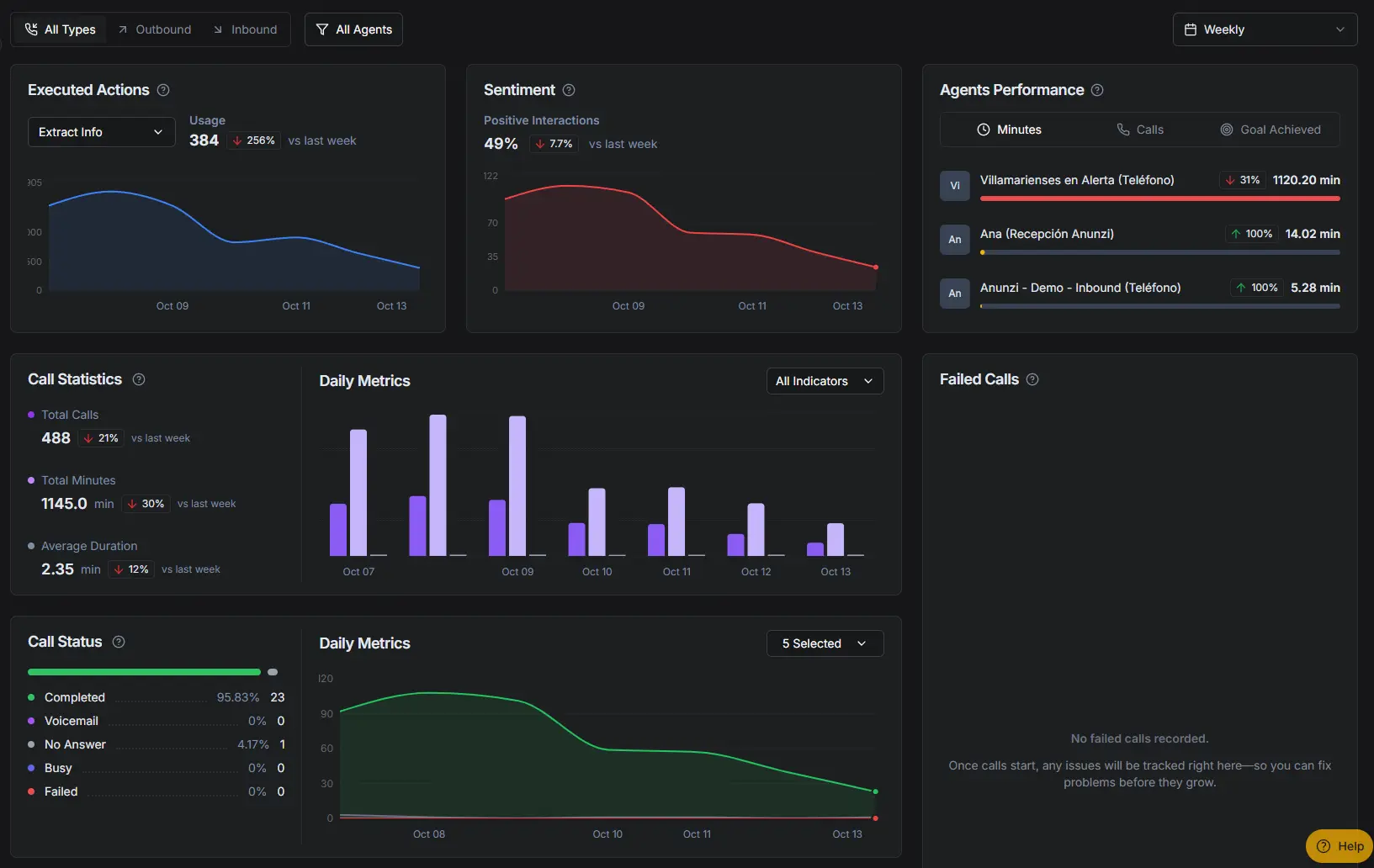 Está pensado para alto volumen: miles de llamadas al día con baja latencia y alta precisión. Puedes sumar casos de uso, idiomas y capacidad sin crecer en headcount.
